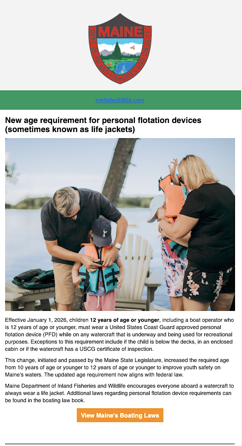 New age requirement for personal flotation devices