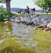 While not toxic, some people may experience skin irritation or upset stomach if water is ingested. Children should be reminded not to swallow lake water while swimming.