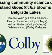 Gloeotrichia, a type of blue-green algae, has recently appeared in the Belgrade Lakes as a variable green blush on the water. Roy Bouchard, formerly of the Maine Department of Environmental Protection (DEP), introduces the issue. DEP, BLA, and Colby College are collaborating to learn more about this mysterious organism.